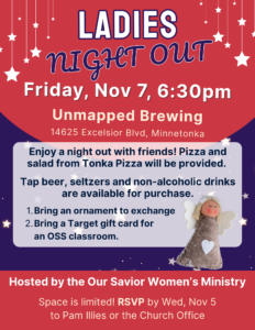 Hosted by the Our Savior Women’s Ministry