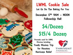 LWM Cookie Sale Calendar Add to Calendar Add to Timely Calendar Add to Google Add to Outlook Add to Apple Calendar Add to other calendar Export to XML When: December 17, 2017 @ 9:00 am – 12:00 pm 2017-12-17T09:00:00-06:00 2017-12-17T12:00:00-06:00