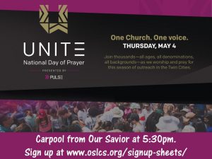 Sign up to carpool from Our Savior at 5:30pm.