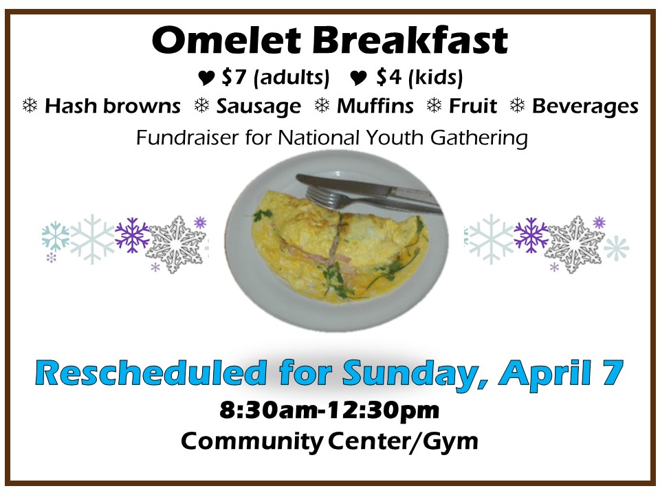 Omelet Breakfast Calendar Add to Calendar Add to Timely Calendar Add to Google Add to Outlook Add to Apple Calendar Add to other calendar Export to XML When: April 7, 2019 @ 8:30 am – 12:30 pm 2019-04-07T08:30:00-05:00 2019-04-07T12:30:00-05:00 Where: Our Savior Lutheran Church 23290 Highway 7 Excelsior MN Cost: Adults $7, Kids $4