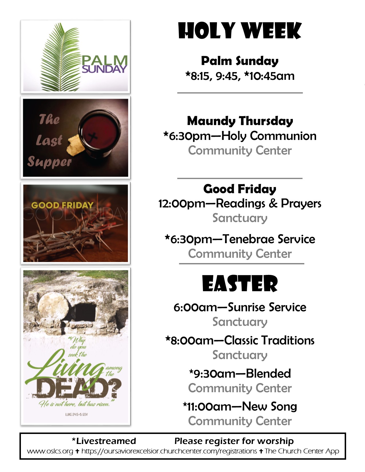 Palm Sunday Worship 8:15, 9:45, 10:45am Calendar Register Add to Calendar Add to Timely Calendar Add to Google Add to Outlook Add to Apple Calendar Add to other calendar Export to XML When: March 28, 2021 @ 8:15 am – 11:45 am 2021-03-28T08:15:00-05:00 2021-03-28T11:45:00-05:00 Cost: Free Register here for Palm Sunday worship.