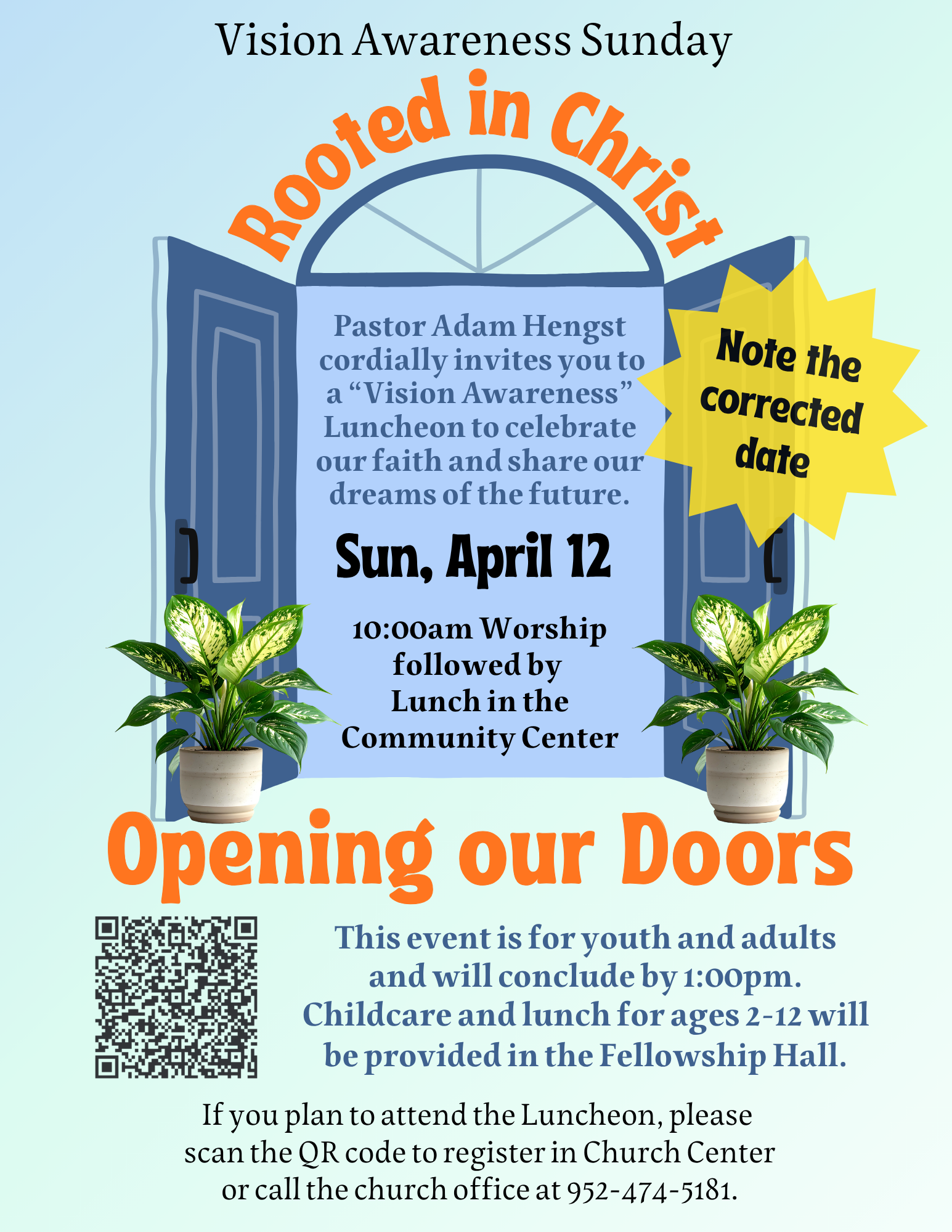 Pastor Adam Hengst cordially invites you to a “Vision Awareness” Luncheon to celebrate our faith and share our dreams of the future.